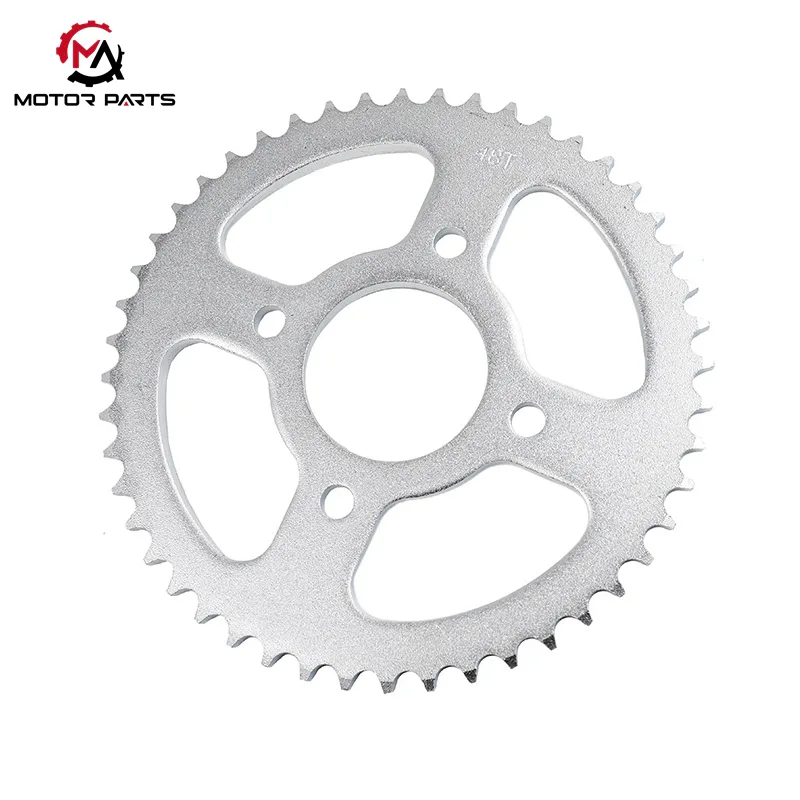 Nagbibigay ang Max Trading ng mga 428-48T na sprocket ng motorsiklo na may mataas na pagganap. Bilang pangunahing bahagi ng transmission na nagkokonekta sa makina at gulong sa likuran, ang produktong ito ay gawa sa top-grade 45# medium carbon steel at sumasailalim sa isang tiyak na propesyonal na proseso ng heat treatment, na nakakakuha ng surface hardness na HRC25-30, na makabuluhang nagpapahusay sa wear resistance habang pinapanatili ang internal toughness. Bilang isang propesyonal na Motorcycle Sprocket Factory Supplier, hindi lang kami nagbibigay ng karaniwang 48-tooth parts na eksaktong akma sa 428-type na chain, ngunit tinutulungan din namin ang mga pandaigdigang wholesaler na magkaroon ng competitive na bentahe sa kargamento at kalidad sa pamamagitan ng malaking 15% na diskwento sa pagbili, flexible OEM/ODM customization services, at one-stop import at export logistics solutions.