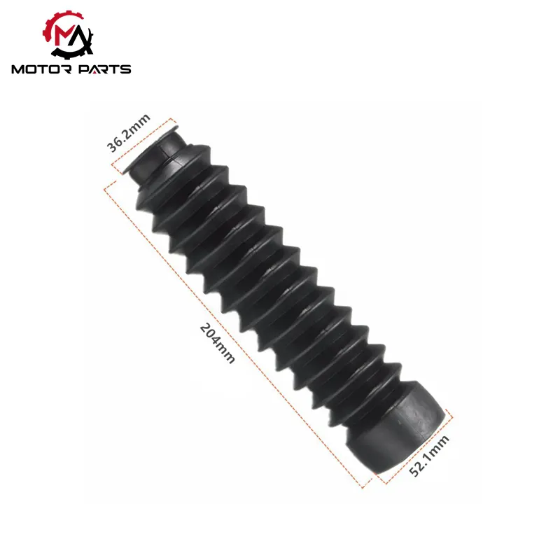 Ang front shock absorber dust cover ng motorsiklo ay gawa sa mataas na nababanat at malambot na mga materyales, na epektibong makakapag-iwas sa mga banayad na panginginig ng boses na dulot ng pagpapalawak at pag-urong ng shock absorber, habang makabuluhang binabawasan ang ingay na dulot ng mga panginginig ng boses habang pinapabuti ang kaginhawaan ng pagsakay; Ang ilang mga produkto ay espesyal na idinisenyo na may makapal na mga istraktura, na nagpapataas ng timbang ng 30% kumpara sa mga ordinaryong modelo. Malakas nilang mapaglabanan ang mga panlabas na epekto gaya ng maliliit na epekto sa bato at mga gasgas sa sanga ng puno, na nagbibigay ng komprehensibong proteksyon para sa mga sumisipsip ng shock.