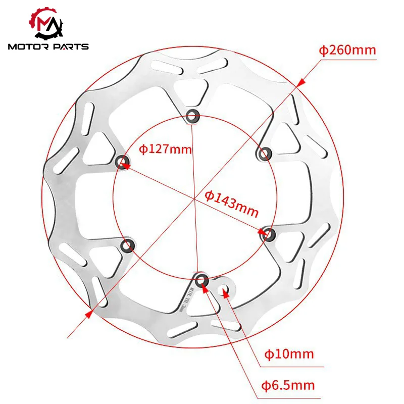 Pinag-isang 260mm diameter: Ang mga pangunahing modelo ng brake disc ay pantay na gumagamit ng isang 260mm diameter na detalye. Ang karaniwang halimbawa ay ang modelong 77709160000, na ganap na katugma sa mga sasakyang serye ng KTM MX/Enduro na ginawa mula 2003 hanggang 2025.